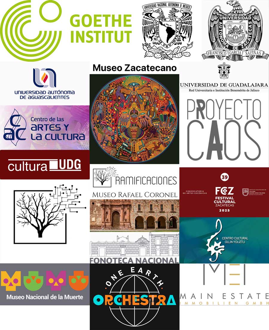 Partner: Festival Cultural Zacatecas / Valeria Jonard, Komponistin, Künstlerische Leiterin des Festivals Ramificaciones in Zacatecas / Prof. Daniel Escoto Villalobos, Universidad Autónoma de Zacatecas / Wixarika Gemeinschaft Zacatecas Zeitplan: 14. + 15. 4. 25: Musikalische Begegnung mit Wixarikari Gemeinschaft / 15.+18.04.25: 2 Konzerte beim Festival Cultural Zacatecas in Kooperation mit Ramificaciones / 17.-19.04.25: Workshops und Lextures („Musikalische Feldforschnung, Öko-Akustik, Bio-Akustik“) an Universidad Autónoma de Zacatecas Konzertorte: Museo Rafael Coronel: https://www.zacatecastravel.com/detalle_museo.php?museo=4 / Museo Zacatecano: https://zacatecasmeetings.com/contenidos/museo-zacatecano/