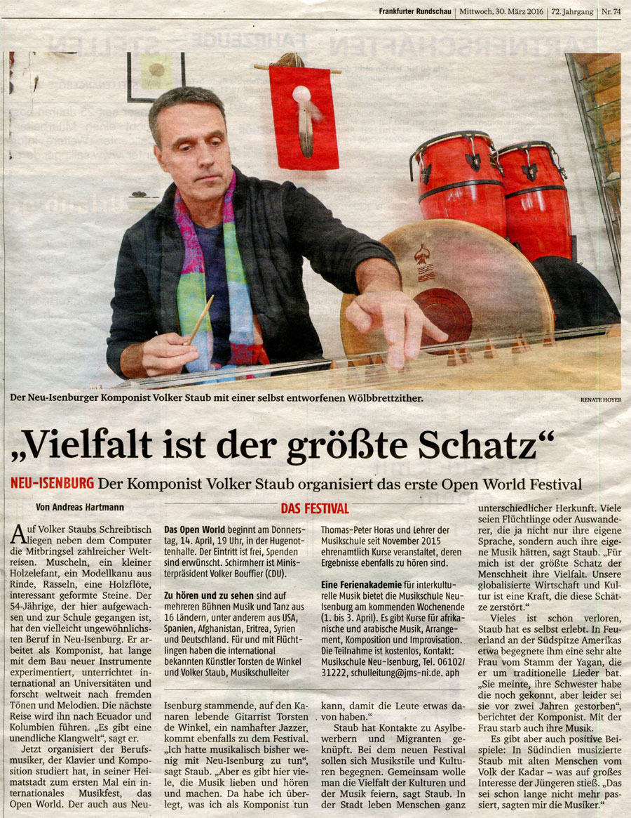 Der Komponist Volker Staub organisiert das erste Open World Festival